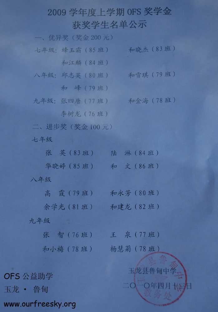 [奖学金]OFS用友政务奖学金发放情况(2010年春季学期) [复制链接]