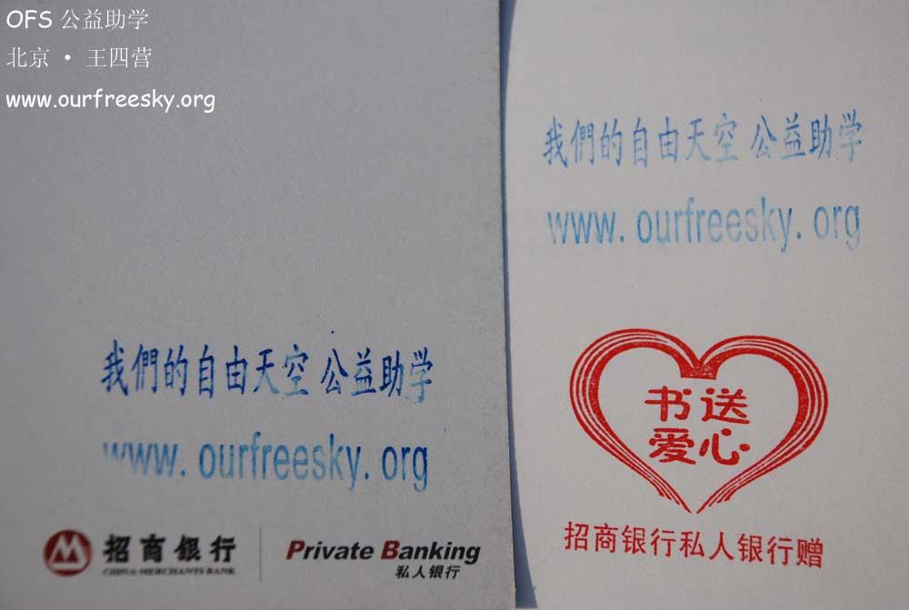 您或许不知道,在我国中西部广大贫困山区的学校里,孩子们最大的愿望是能有几本课外书。为了帮助孩子们拥有自己的图书室,招商银行联合万事达卡,在2010年上半年通过壹基金发起了捐建图书室的“书送爱心”行动。从现在开始,招商银行私人银行每增加一位私人银行客户,我们将立即通过壹基金向贫困学校捐赠一笔资金,用于为孩子们修建图书馆。为了让更多孩子达成心愿,我们计划将此活动长期开展下去,让更多贫困地区的孩子读到您的关爱:一张卡,一份心,一座爱的图书馆。