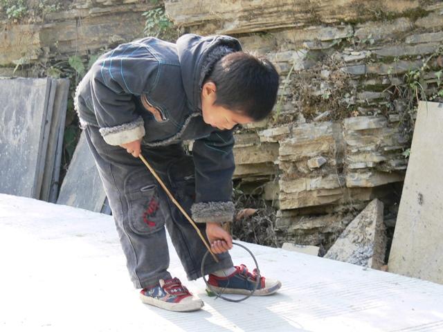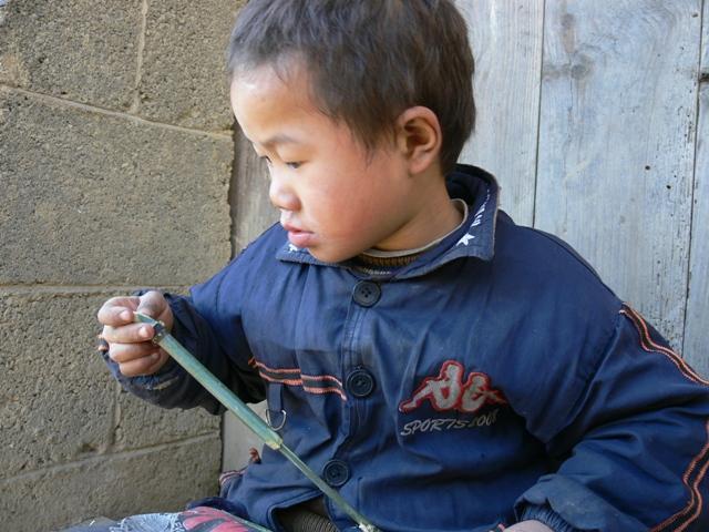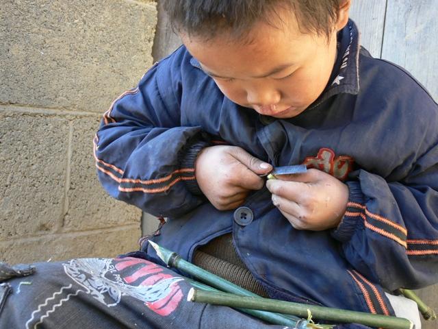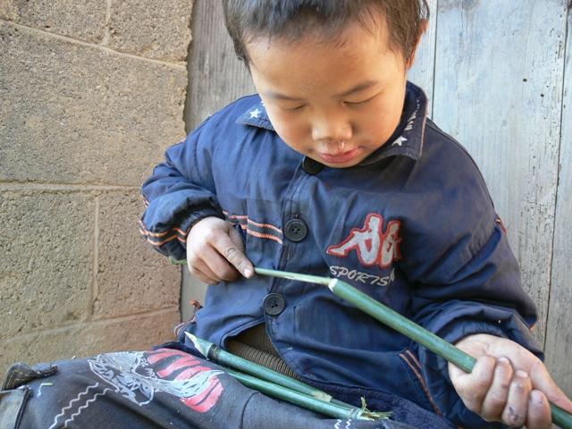 聪明的杰喜,自己做竹管枪,我说送老师一支怎样,他说-----想得美-----
