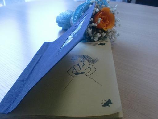 2011-2-18这个是敏敏今天刚发我的图,刚刚从义卖店拍的本子。扉页她自己画的自画像,很可爱,像个小公主。:)(秀的是俺的拙作,手工本)