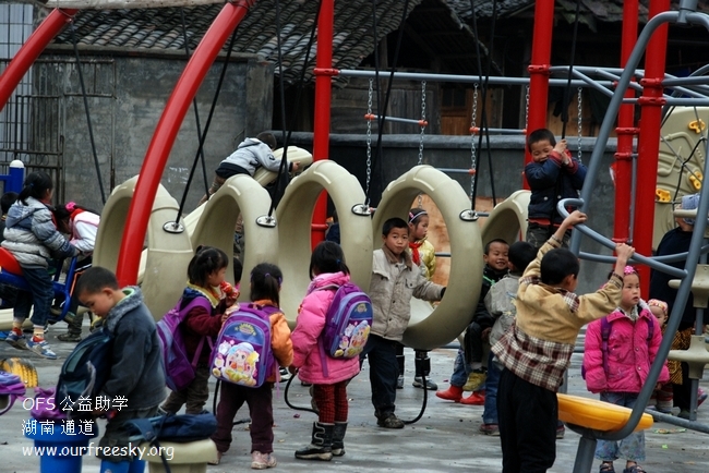 大众小学  校园中的娱乐设施 为灾后壹基金捐助