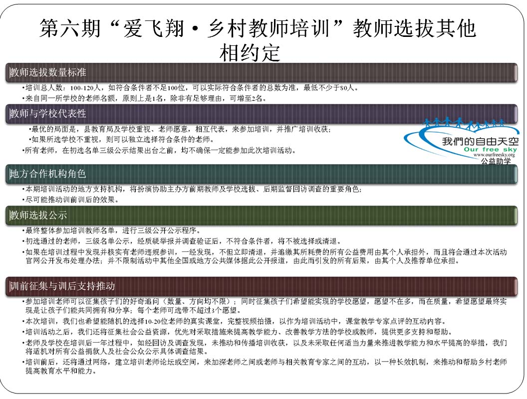 第六期爱飞翔·乡村教师培训教师选拔流程(草案) [复制链接]