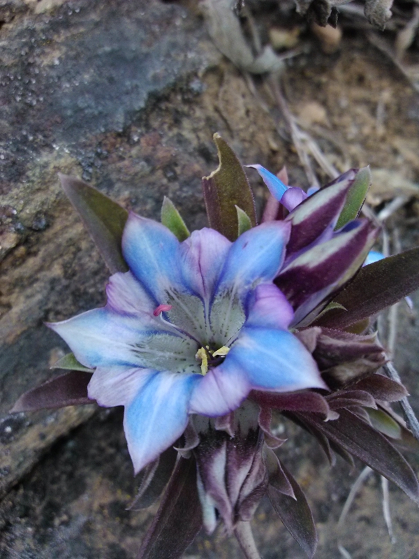 29号原计划王芳和中心校孙老师走相对较近的卡瓦组和克苦组,我和扎西老师走子洛组。结果我和扎西老师走了子洛和克苦。这一天是我觉得走访全程中最艰苦的一天。一路看见盛开在山间、崖边的蓝色小花,给我安慰和力量。后来据专家鉴定,此花为云南八大名花之一:龙胆。 Gs0x;91