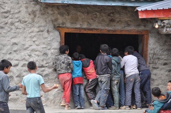 开始俄碧家访发助学金......孩子们一直跟着我们直到走完最后一家...... 2FV@ ?x0po