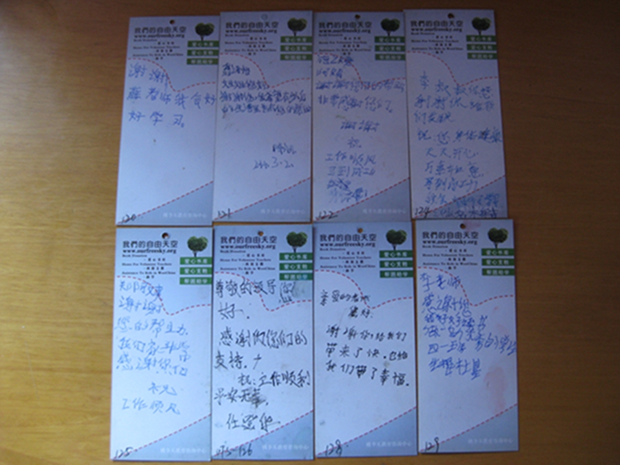孩子们都收到到了心爱的礼物和甜蜜的糖果,男孩子有帅气的棒球帽,女孩子有漂亮的发卡和头花。三年级每个同学收到他们人生的第一支钢笔。成绩优异,表现好的同学还收到手表作为奖励。再次感谢张娅和张晶的成全,成全了一次老师对学生的宠爱。孩子们因为收到礼物和奖励而高兴,而我因为感受到他们的快乐而幸福。有人对我说,你花这样多时间去做这样的事情真是太浪费了,你可以做出更加有价值的事情。可是在我心里,没有什么是比幸福更有价值的。 i20y\V os?