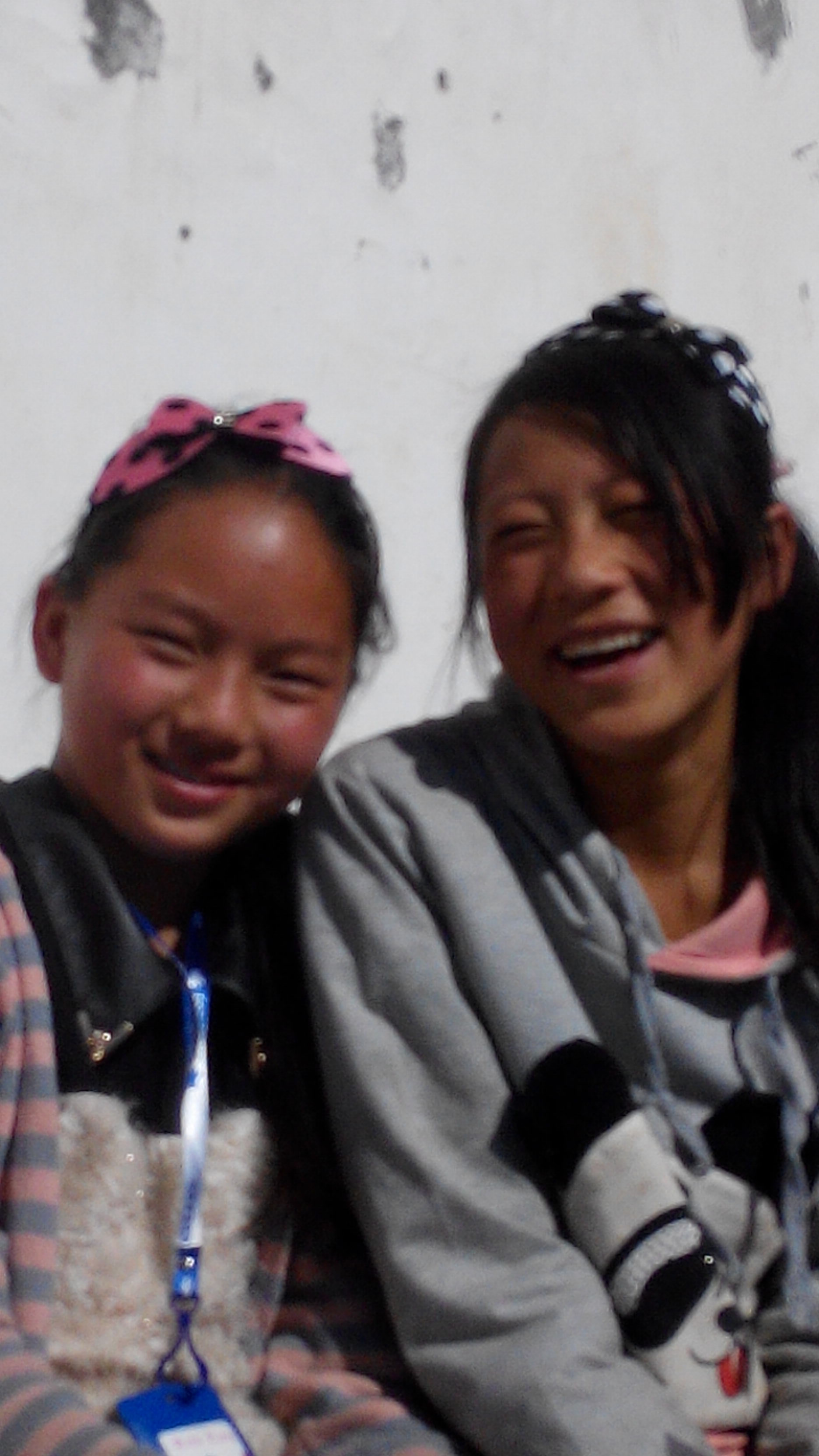 当我们走到木里民族中学,一群笑逐颜开而又腼腆的孩子早已经等在了学校门口。 [pzo[0G 'v
