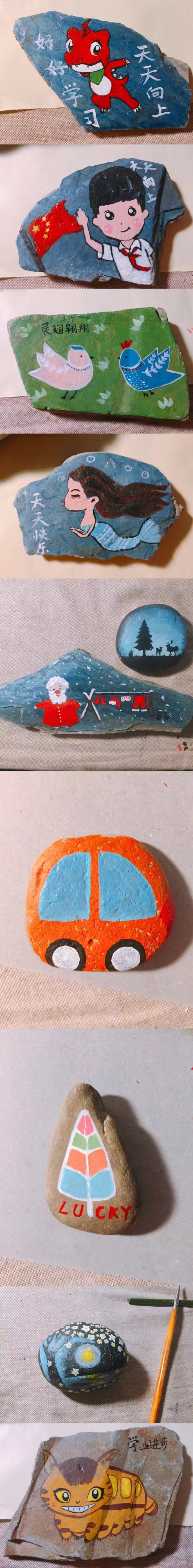 十几天来可能画了五十多个石头,是想把对他们的祝福印的更坚固一点。我们一起捡过石头,他们也像讨好我似的把石头洗干干净净放在我窗台,手却   冻通红。
