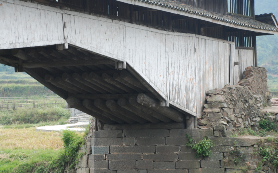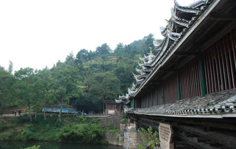 整座建筑不用一钉一铆,全系木料凿榫衔接,横穿竖插。棚顶都盖有坚硬严实的瓦片,凡外露的木质表面都涂有防腐桐油,所以这一座座庞大的建筑物,横跨溪河,傲立苍穹,久经风雨,仍然坚不可摧。 WOO%YU =