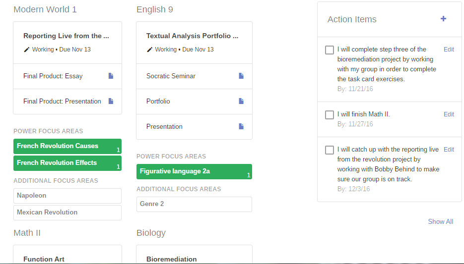 Facebook联手高峰公立学校(Summit Public Schools)开发了一种在线教育工具—PLP(即“个性化学习平台”)。这一软件能将一学年的课程聚合在一起,形成项目视图,而学生可以在日程表上安排自己的学习进度、选择学习材料并参加考试。通过PLP,老师可以评估学生的学习情况,并与学生配合,共同确定新课程计划。