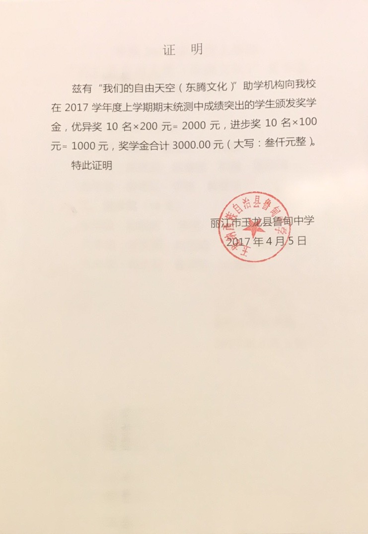 2017年春季玉龙助学走访已结束,感谢东腾文化对山区孩子学习的支持和激励。 vFi+ExBU