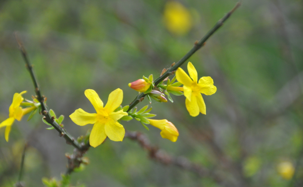 fBYH,M 春寒料峭时候,最先开放的是迎春花(学名:Jasminum nudiflorum Lindl.