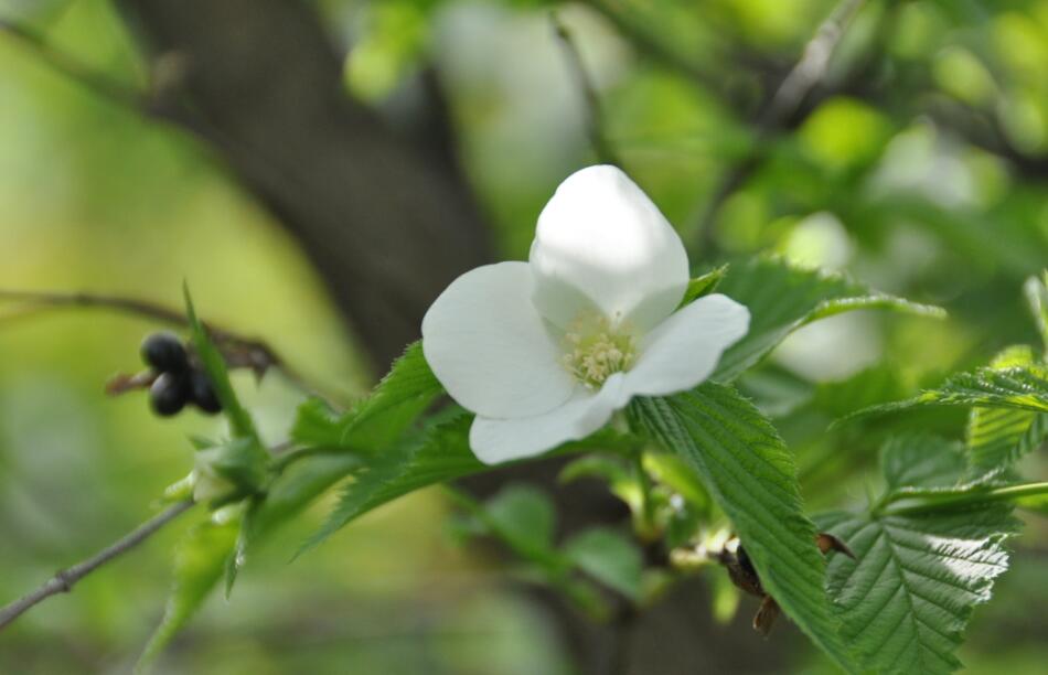 LJt5?zQKrW 鸡麻(学名:Rhodotypos scandens),别名双珠母,蔷薇科鸡麻属植物,落叶灌木,根可入药。