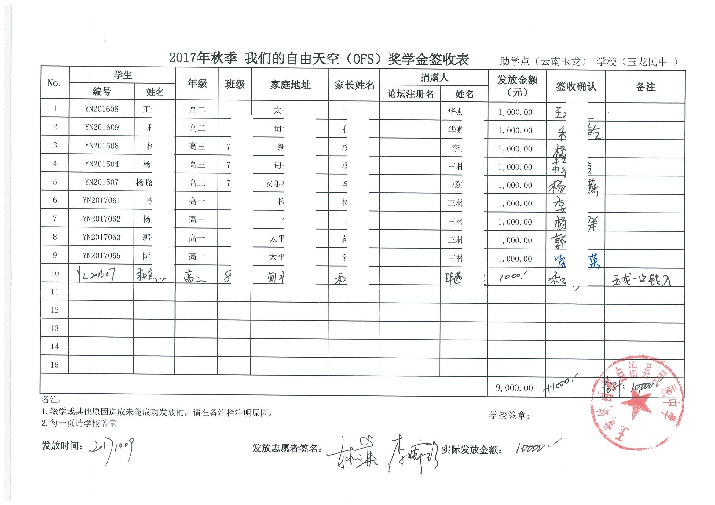 [奖学金]2017年秋季云南玉龙奖学金发放公示(已完成) [复制链接]