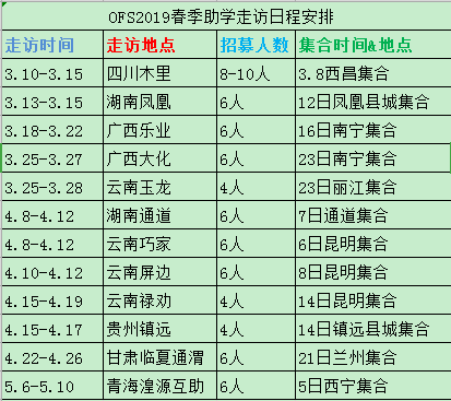[招募志愿者]2019年春季3-5月OFS助学点走访志愿者招募 [复制链接]