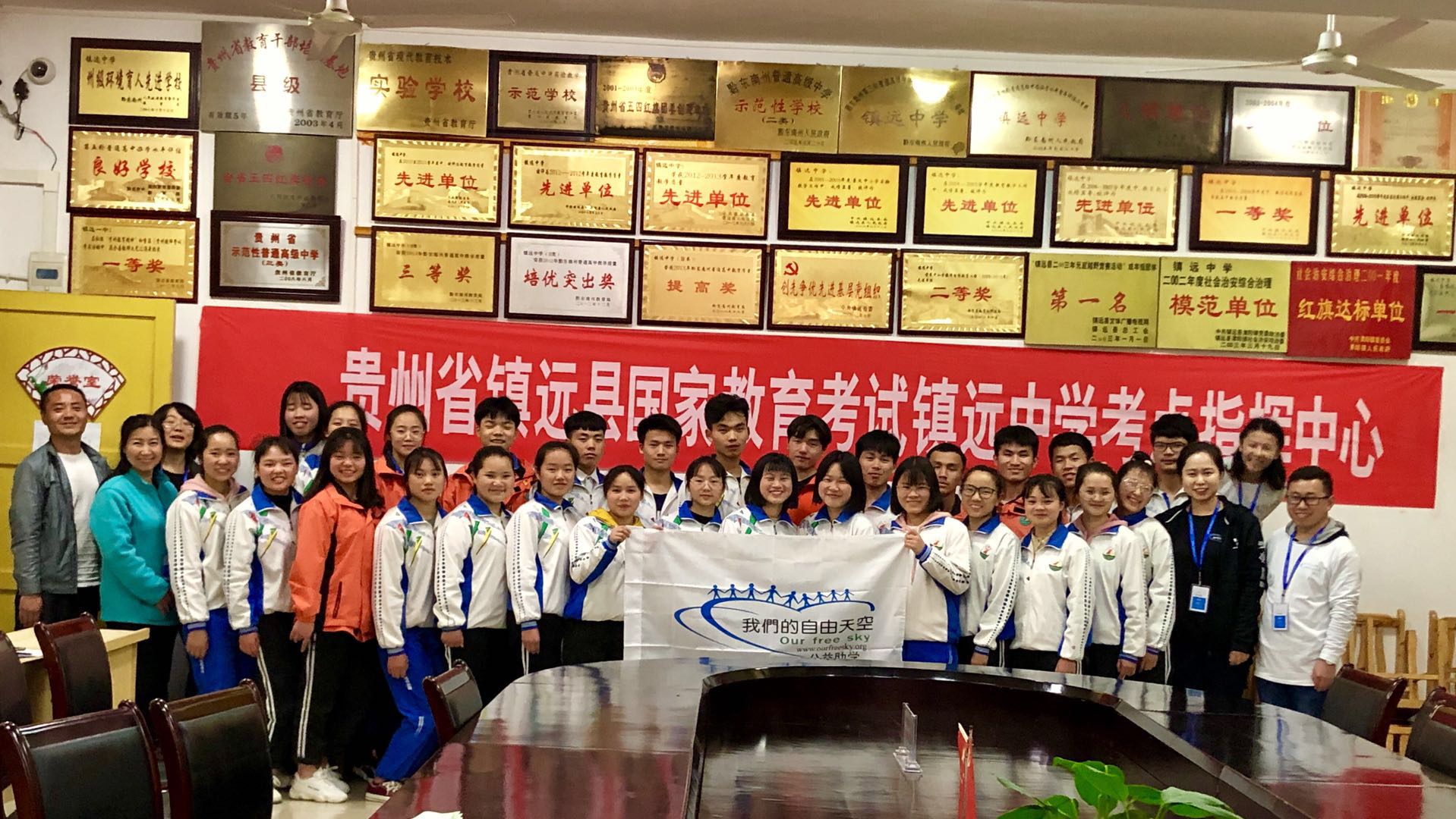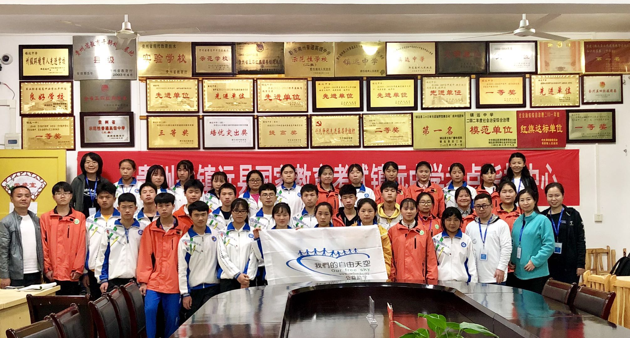 镇远中学共90人的助学金、奖学金发放,因为和金堡30人走访安排在了同一天,可以说行程和任务相当紧张。早上出发,走访完金堡地区,已是下午5点多。金堡中学的校长盛情邀约晚饭,实在是难以推辞,匆忙晚饭后便驱车直奔了镇远中学,不敢停歇。约7点到达了镇远学校。