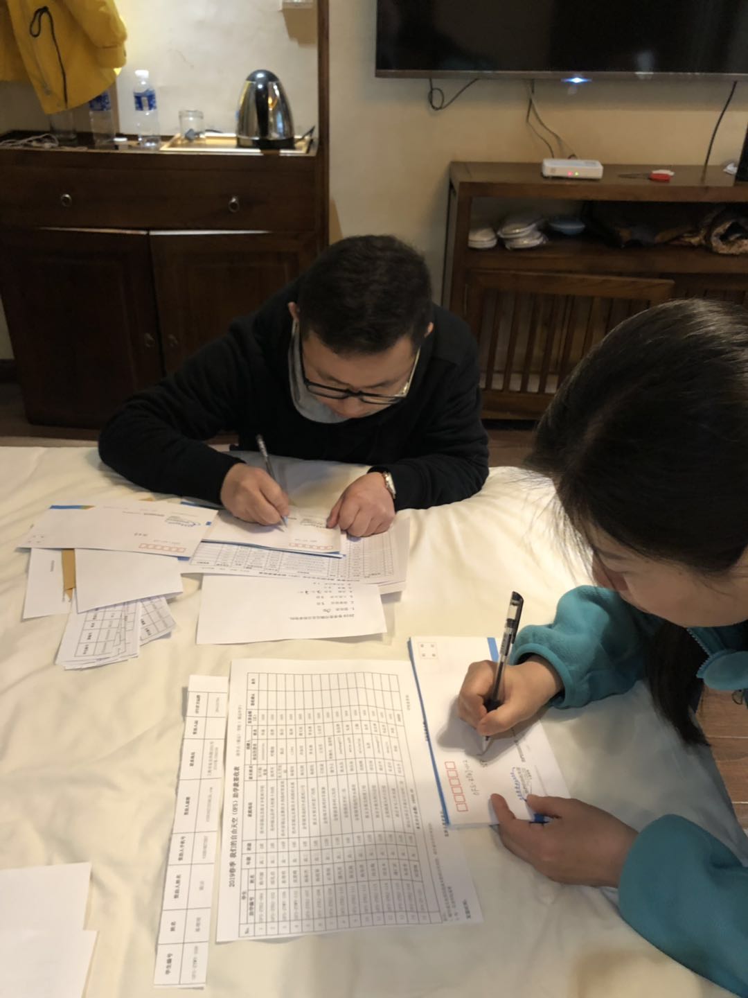 按计划,我们15日发放文德中学的助学金,16日要完成金堡地区30人走访任务、镇远中学31人奖学金发放、59人助学金发放。行程和任务相当紧张。虽然大家都是一大早赶着星星出门,直飞贵阳,然后下午又一路奔波赶火车,拖着疲惫的身躯抵达镇远,但我们丝毫不曾停歇,很快便投入了准备工作。我们犹如打了鸡血似的充满了精神。写信封、核对学生、核对助学金奖学金、准确装袋、顺序排列等...前期的准备工作可谓是相当充分,井井有条。等待着随时奔向学校,为孩子们发放助学款。