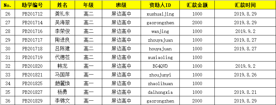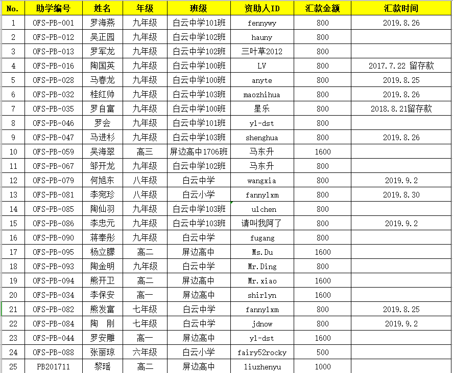 [汇款确认]公示丨2019年秋OFS云南屏边奖、助学金汇款确认(更新中) [复制链接]