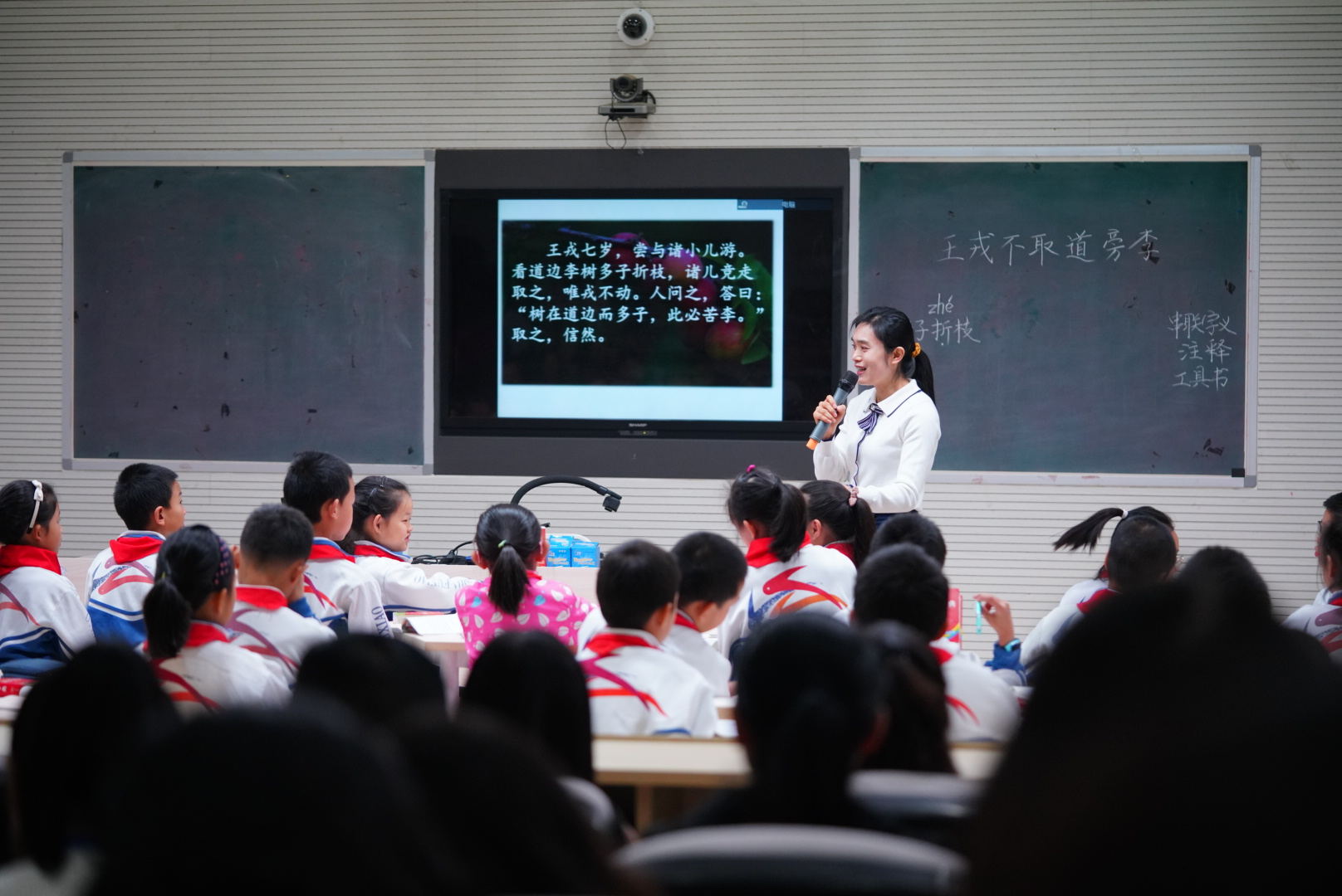 8:50在多功能厅,聆听李玉玲老师的文言文《王戎不取道旁李》的朗读课,课堂形式以学生为主导,自主课堂是农大附小教学特色之一,老师在教学的过程中起引领作用,积极发挥了学生的自主学习性,让学生主动发现问题,解决问题,成为课堂的主人。