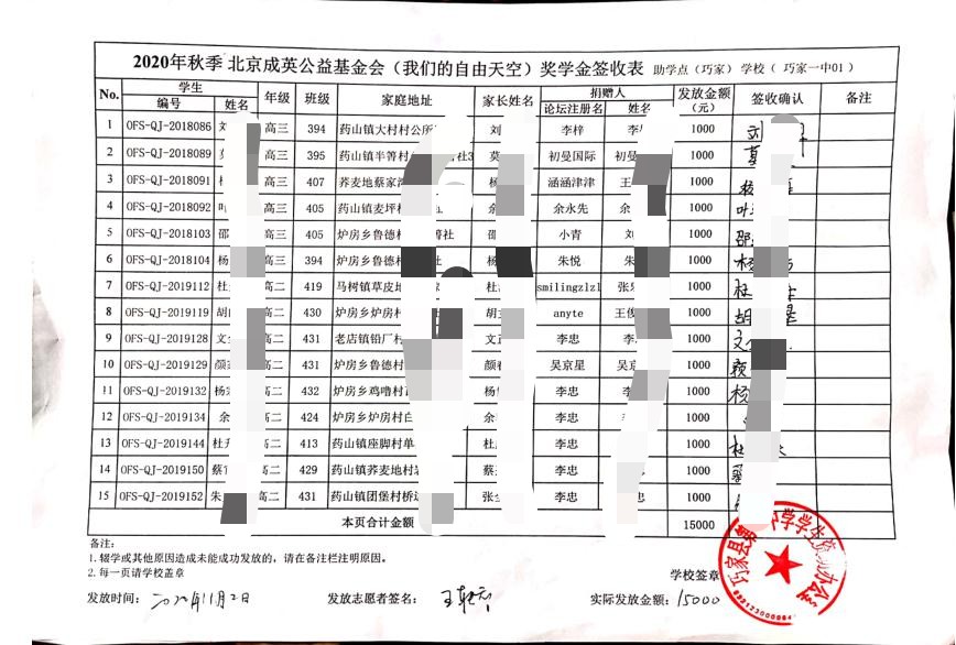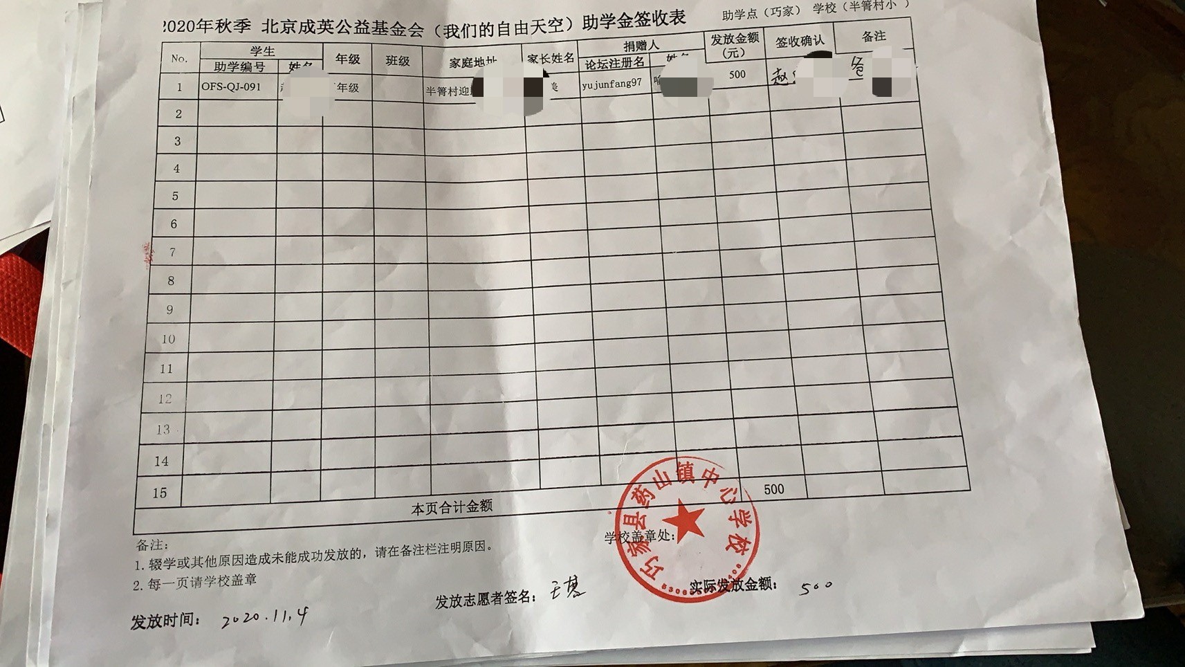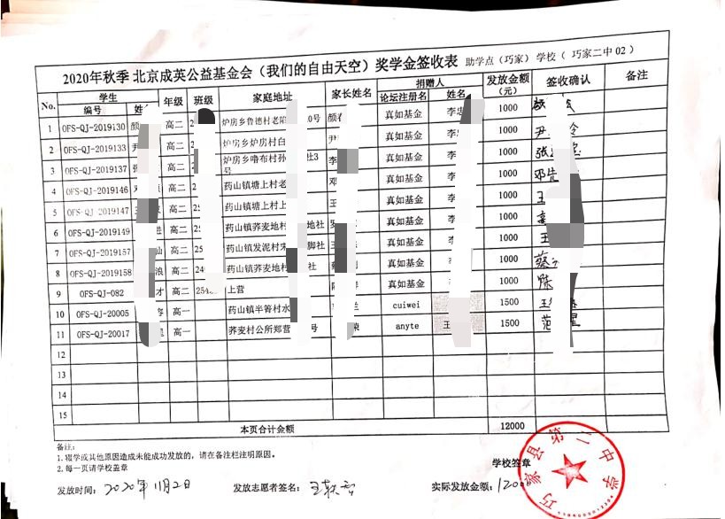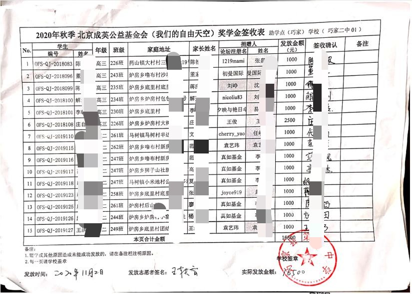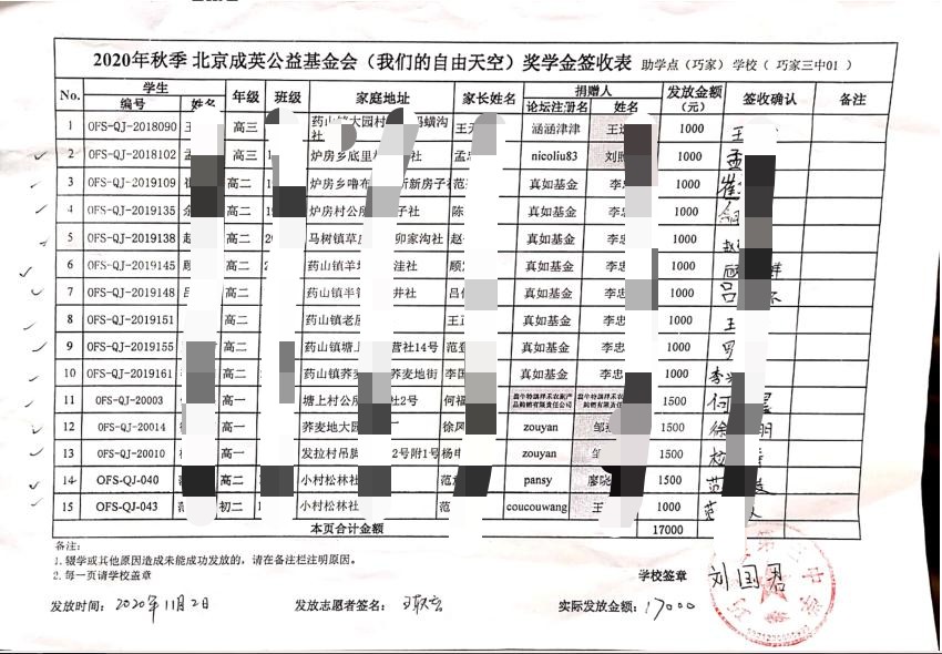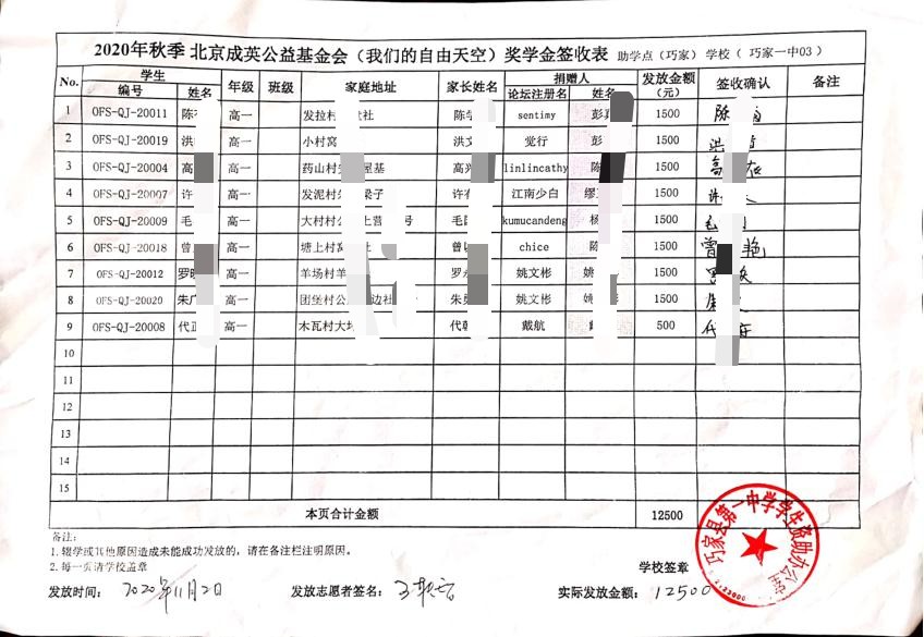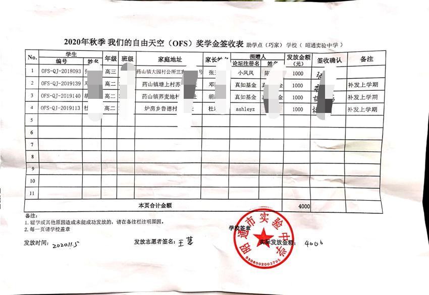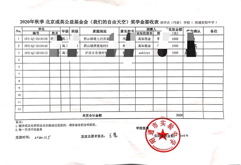 (为保护孩子权益计,孩子的真名和学校在公示中隐去,原版文件将发到资助人邮箱,如有疑问可发送邮件到:qiaojia@ourfreesky.orgkids@ourfreesky.org Z.Y8z#[xg