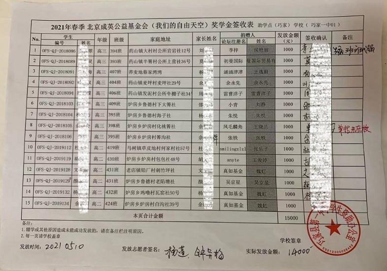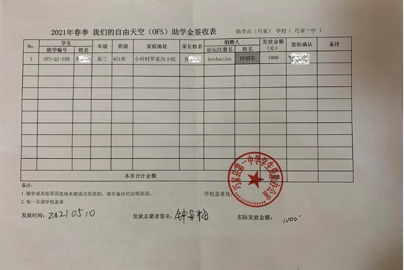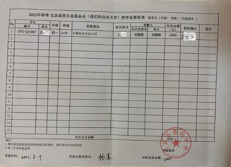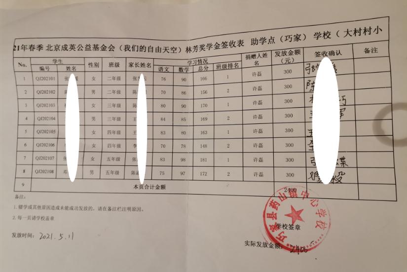 (为保护孩子权益计,孩子的真名和学校在公示中隐去,原版文件将发到资助人邮箱,如有疑问可发送邮件到:qiaojia@ourfreesky.orgkids@ourfreesky.org r<dvo%I#|