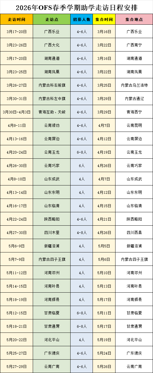 由于2026年春季学生期中或者会考等考试时间还未确定,如走访日期遇到这个时间会再做一些小调整,时间上至少会提前十天通知大家,也请在申请审核通过后及时关注群内信息。
