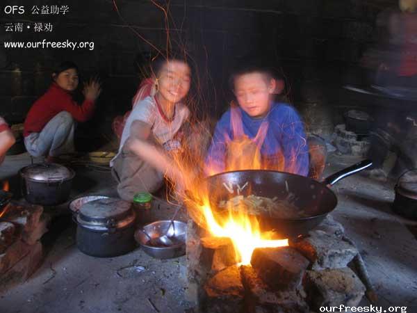 上图是普福小学学生的灶房。周末孩子从家里背粮背柴,上学时,就自己在简陋的灶台上做饭,哪怕一年级的孩子也得自己做。