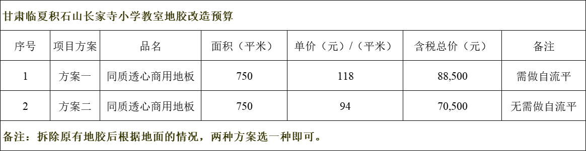 目前,由于学校教室地胶铺设时间较长,地面已经磨平并且破损严重, 需更换新的地胶。