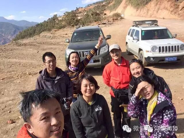 这幅自拍群像,很多人说我沧桑迷茫,确实如此,当时眼前金花乱冒。要不是车上用老太太吃铁蚕豆的咀嚼方法吃了块面包,这点体能是撑不到木里县城了。
