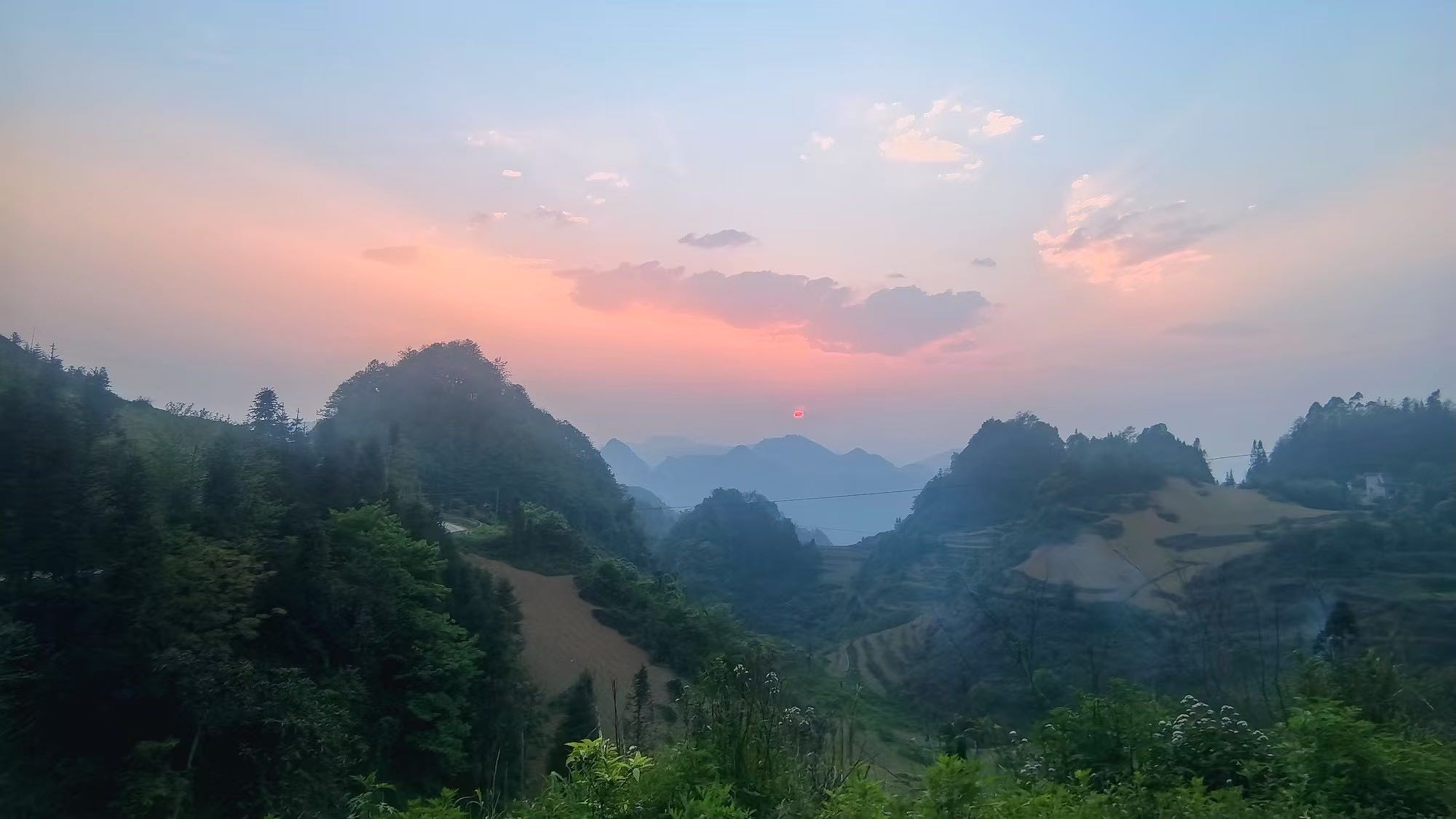 走访结束,回到乡里,已经八点钟了,因为时差的原因,天还没黑,看见了美丽的夕阳,深山里风景很美,可也很无奈。