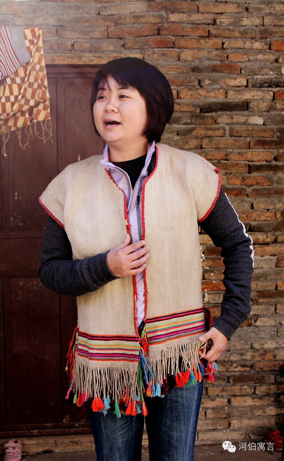 (刘老师试穿纳西族羊毛坎肩,大家记得犀利哥的扮相吧)