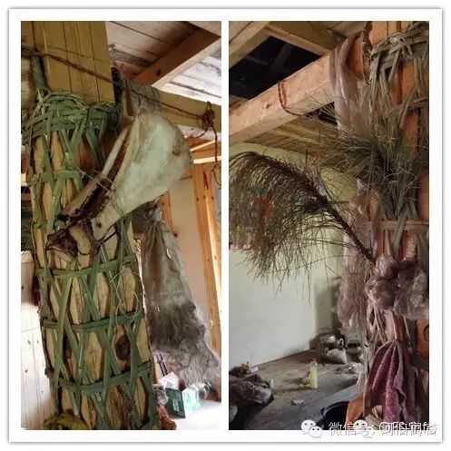 (房屋柱子上的牛骨与稻穗,都有祈福护佑的意味)