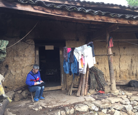 我们这一组走访木都底村。中心校的老师开了辆越野车走了一小段硬化的乡道后,很快就进入了泥泞的村道,车挂一档如同船一般在可以没到半个小腿的泥淖中艰难前行,坐在后座可以明显感到车的后轮在飘来飘去,更要命的是道路狭窄,贴着山体,左边就是深不见底的山谷,还时不时飘来浓雾(高寒山区里遇见浓雾是再正常不过的事了),有时能见度不足20米。半道上遇见几个苗民,或开着摩托(此时只能推了),或牵着马,在泥泞中跋涉。忽然开车老师的手机响了,随我们一同走访的另一辆车呼叫他们的车陷在泥泞中动弹不得。开车的老师和志愿者李伟(女,她英明地带来了雨衣雨鞋)下车去救援后车,过了好一会他们才深一脚浅一脚地回到车上,膝盖以下沾满了泥。