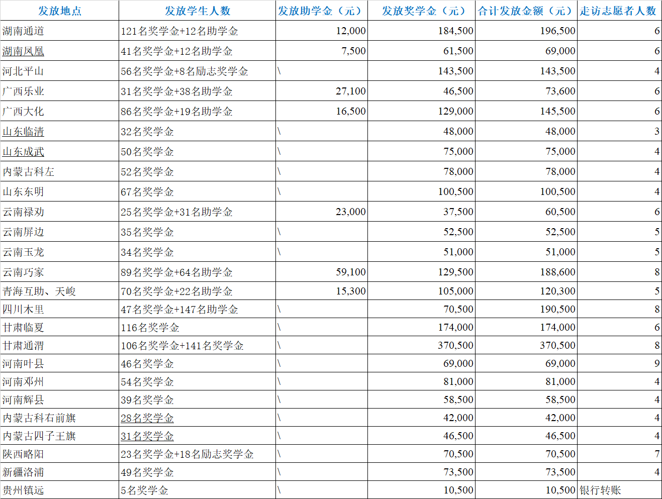 2025年OFS春季助学走访活动,自3月初开启,至6月中旬圆满完成。在这个春季,有来自全国各地130名志愿者小O们参与助学走访活动,走访了OFS的25个助学项目点,累计发放奖学金、助学金2,589,000元,发放奖、助学金学生1845人。