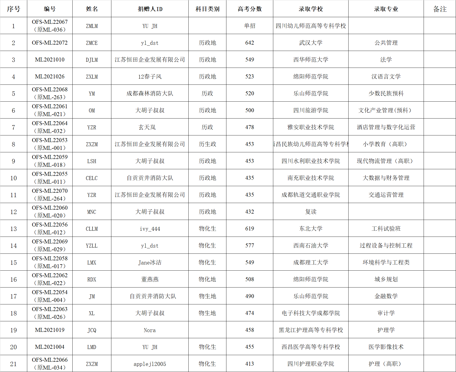 成英公益基金会小程序上线的奖、助学金学生,目前还有183名学生待结对,欢迎大家结对或宣传扩散给更多的爱心人士,让这些学生有机会结对,顺利完成学业。