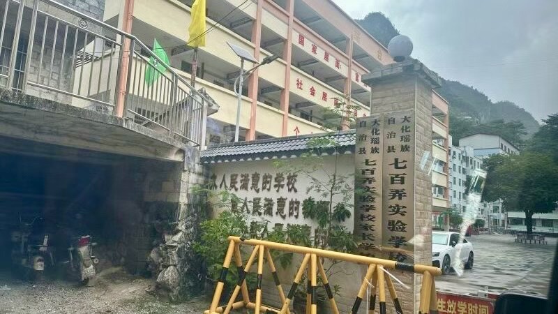 快到七百弄实验学校时,山路渐缓。也有了些人家,经过几乎90度转弯又下坡的车停在了学校的大门口。