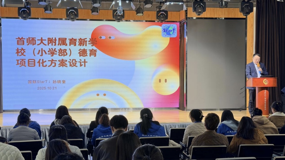 小学部:下午,教师们前往育新学校小学部参加专题培训。付胜利校长致欢迎词,鼓励老师们多提问题、深入探讨、共促成长。中国教育信息化创客教育研究中心秘书长孙晓奎带来《首师大附属育新学校(小学部)德育项目化方案设计》专题讲座,详解国际StarT 项目式学习模板。李雪如校长分享十二年一体化戏剧课程建设经验,展现戏剧育人的独特价值;边慧颖主任介绍 “3456 校本教研模式”,为 “双新” 改革落地提供有力支撑;赵婧校长聚焦 “思维课堂”,阐述以学生为中心的教学理念;何莹主任分享 “云端家教育” 创新实践,为德育与美育融合、“双新” 改革落地等提供指导。