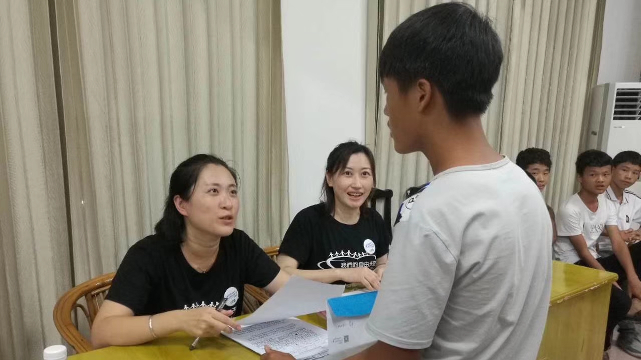 饭后,大家一边往学校走一边聊,老队员感慨变化之大,从前的土路、从前没有的广场……来到大化高中,校方老师带我们来到学校会议室,先发放奖学金,再发放助学金,并且和孩子们沟通交流,填写信息表格。