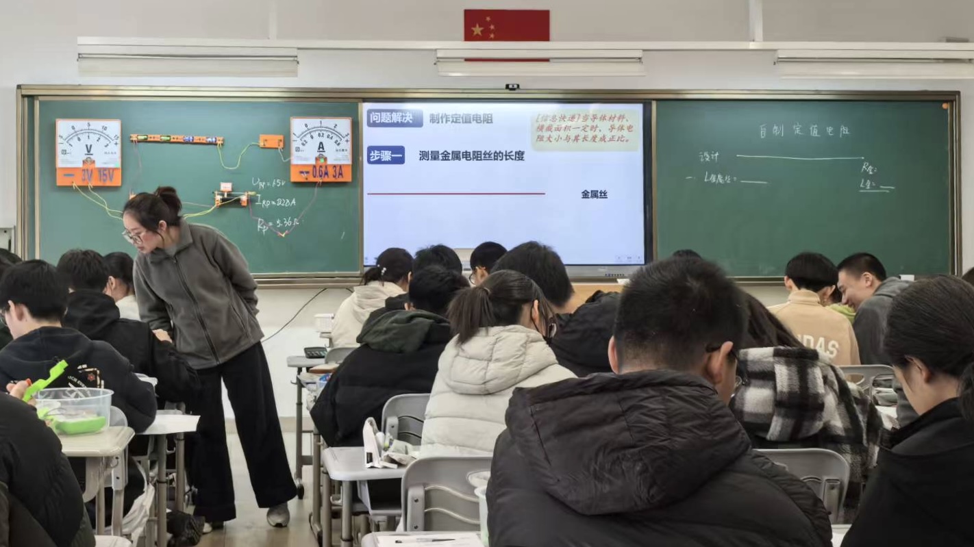 跟岗学习的核心环节是走进景城学校初中部的物理课堂,两周内我先后聆听了《长度的测量》、《非常规方法测电阻》、《电能 电功》、《欧姆定律的应用》等多节优质课。授课教师们深厚的专业素养、精巧的教学设计和灵动的课堂引导,让我对物理教学有了全新的认知。在《长度的测量》课堂上,教师以生活实例为切入点,通过自主探究、小组合作等方式,让学生在实践操作中理解测量原理与误差分析,打破了传统物理课堂的枯燥感。《非常规方法测电阻》一课中,教师引导学生突破教材局限,灵活运用欧姆定律推导多种测量方案,培养了学生的创新思维与科学探究能力;而《电能电功》、《欧姆定律的应用》等课程,则注重知识与生活实际的联结,让学生感受到物理学科的实用价值。