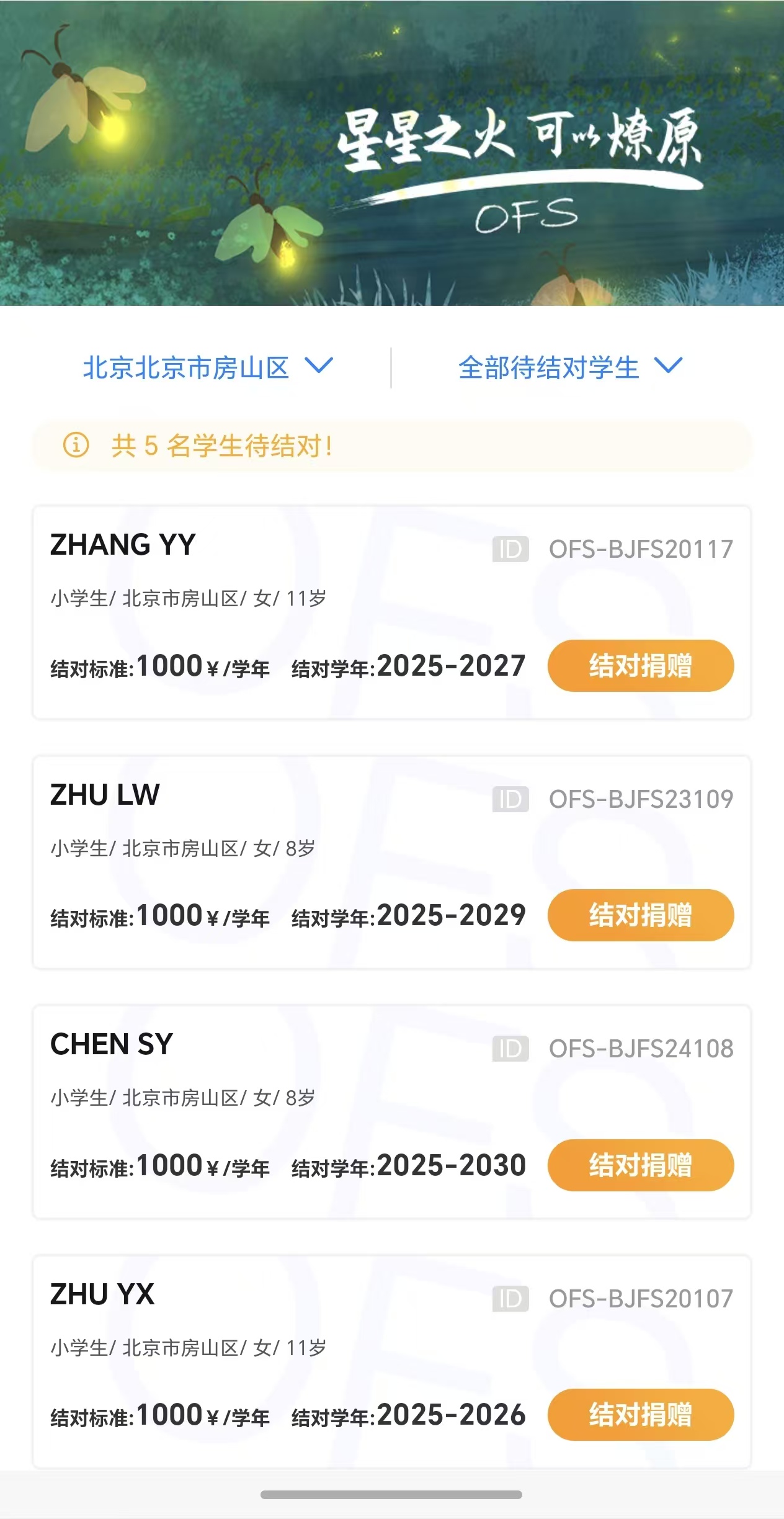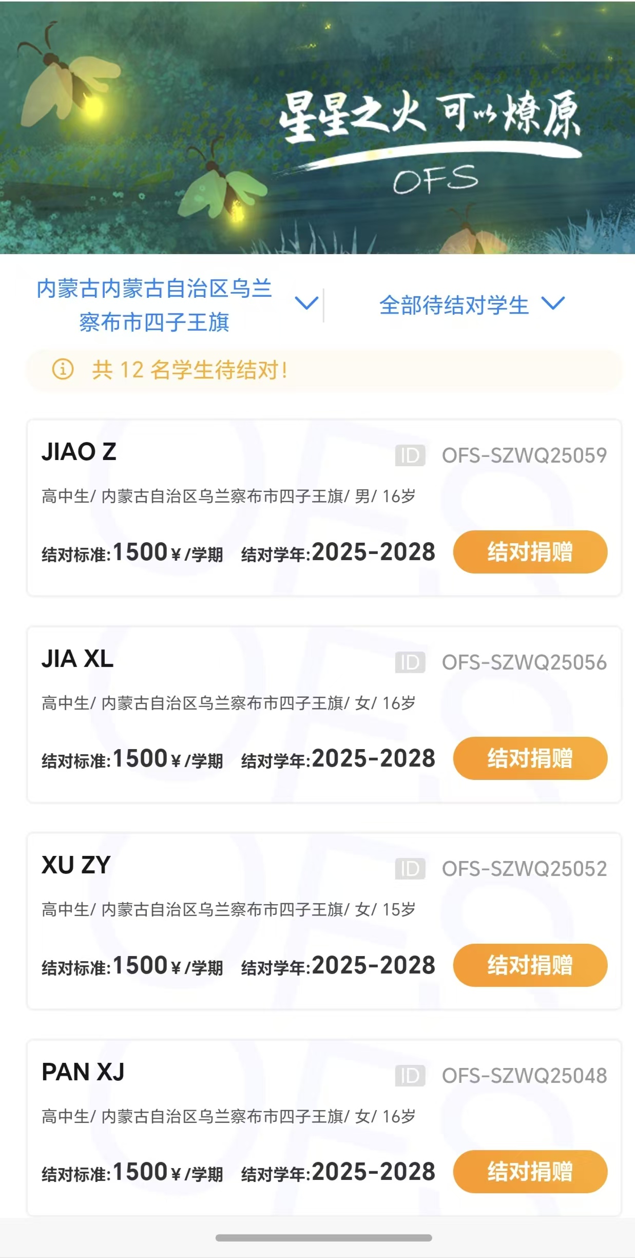 本期走访新增的学生有143名学生已经在“北京成英公益基金会”小程序上线了,在等待支持他们继续学业的人来结对。