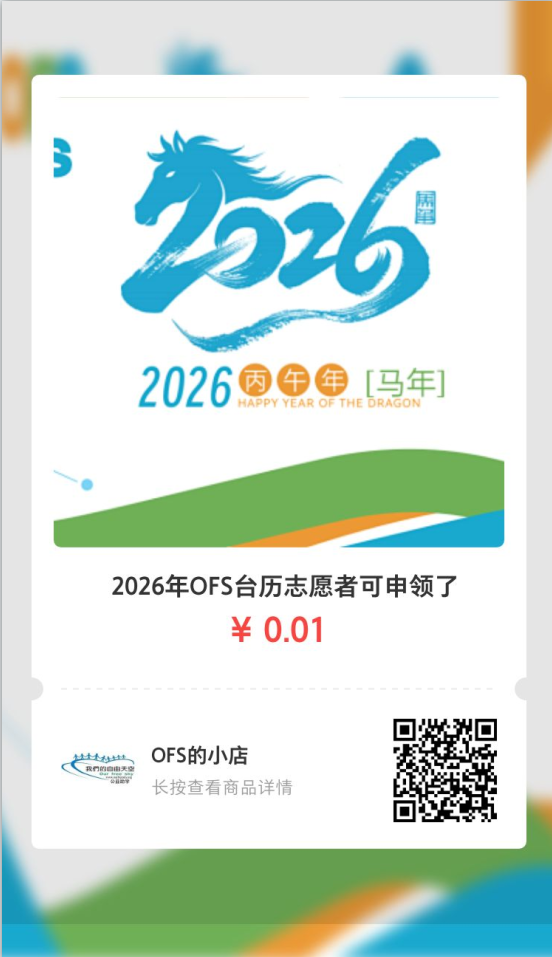 今年的台历会优先面向 OFS 志愿者开放免费申领。