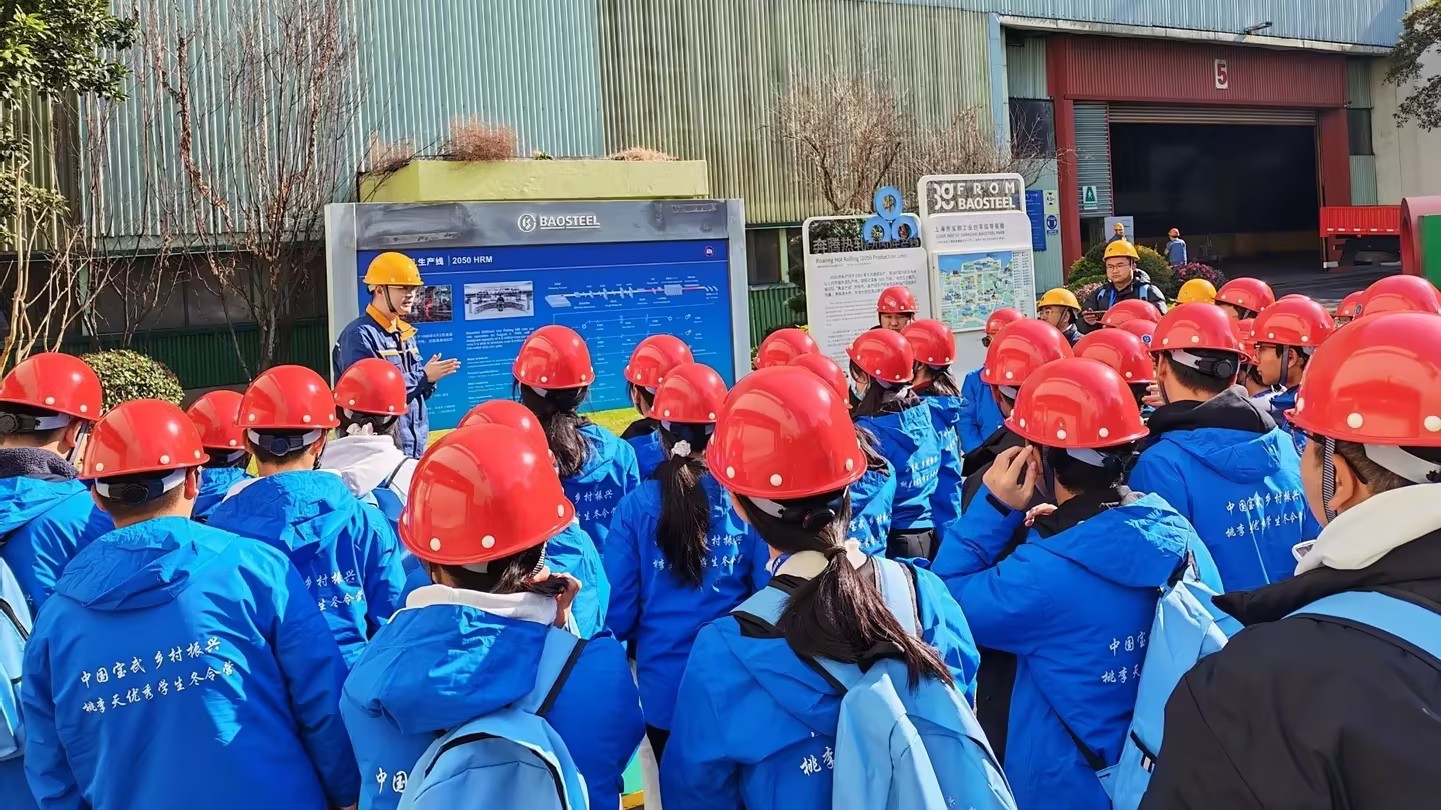2月9日上午,同学们带着新的期待,前往中国宝武钢铁集团进行实地参观。走进宝钢历史陈列馆,一部厚重的钢铁史诗在眼前展开。从发黄的照片、原始的器械到现代化的沙盘与产品,同学们系统了解了中国钢铁工业从无到有、由弱到强的奋斗历程,深刻感受到“钢铁报国”四个字背后沉甸甸的分量与情怀。