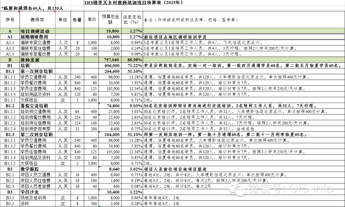 (二)一百二十名甘肃乡村教师参与OFS桃李天乡村教师培训项目。甘肃通渭县和临夏州分别选六十名老师送培。这六十名受培老师包括二十名小学语文老师,二十名小学数学老师,十名初中语文老师和十名初中数学老师。通渭县受培老师到苏州进行交流培训,临夏州受培老师到北京进行交流培训。