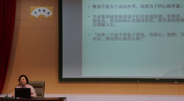 周四的第一场讲座由廖晓红老师主持,围绕学校艺术教育工作展开。在这场讲座中,廖老师将她的教学经验以及她对于艺术教育的重视与热爱传递给了在场的每一位听众。