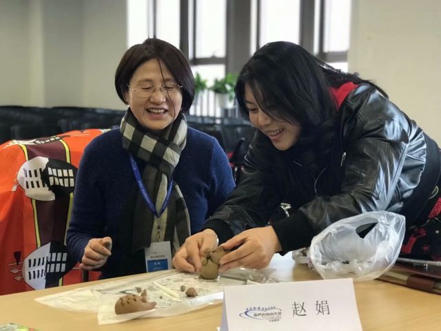 三天的培训,感谢育新学校的孙老师,她给大家分享了艺术创作教学中寓教于乐的宝贵经验。她特意带了陶土,带领大家动手玩泥巴,回味这孩童时代的平常游戏,引导这些中年人要保持一颗童真的心,才能激发孩子的兴趣,融入幼小学生的教育成长中。