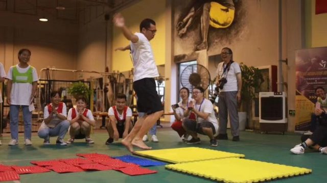志愿者周齐家:说到集体活动,那真是一次帮助团结的经历。在一个闷热、汗流浃背的健身房里,我们为学生们组织了游戏活动。每个同学的背心都有三种不同的颜色:红、蓝、或绿。这些队伍根据颜色,用球和垫子玩游戏。他们还邀请了几位老师参加垫球游戏,参与者必须不穿鞋跳上尖尖的垫子。最后,学生们玩起了撕名牌游戏。虽然游戏很简单,但每个人都玩得很开心,也更深度了解彼此。