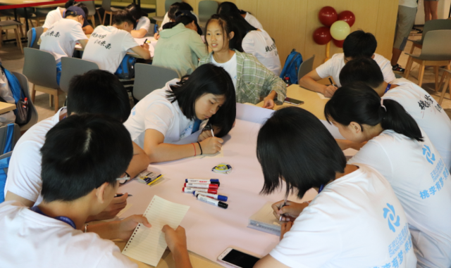 OFS夏令营志愿者小家:不知不觉就到了最后一天,同学们又到了正荣中心,并在那里举办了许多活动。早晨,学生们被分成小组讨论和分享关于他们自己的经历和展望。通过许多探究自己的问题,学生能够更好地了解自己,也对自己想成为什么样的人有更清晰的认识。这也是一种表达自己想法的好机会。当一名学生自豪地宣布他的目标是考上清华大学时,他们对自己未来想要实现的目标特别明确。信心是取得更大成就的关键,只有相信自己能力的学生才能进入清华这样的名校。
